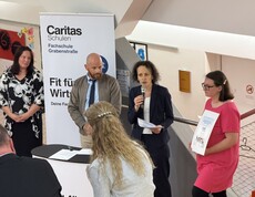 Der Galaabend bot nun die Bühne, um diese Arbeit einem größeren Publikum zu präsentieren. Eltern, Vertreter*innen aus der Grazer Politik sowie zahlreiche Vertreter*innen der Caritas Steiermark – darunter auch die Präsidentin der Caritas, Nora Tödtling-Musenbichler, folgten der Einladung. Durch den Abend führte Direktor Nikolaus Cliotis mit spürbarer Freude über die Entwicklungen an seiner Schule.
