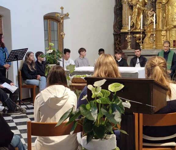 Die Schüler*innen waren eingeladen, sich im Evangelium mit den Worten Jesu vom Weinstock und den Reben auseinanderzusetzen.