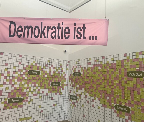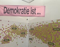 Bei den verschiedenen Stationen des City-Walk wurde unter anderem das Projekt „Stolpersteine“ vorgestellt und die Ausstellung „Demokratie, heast“ besucht.